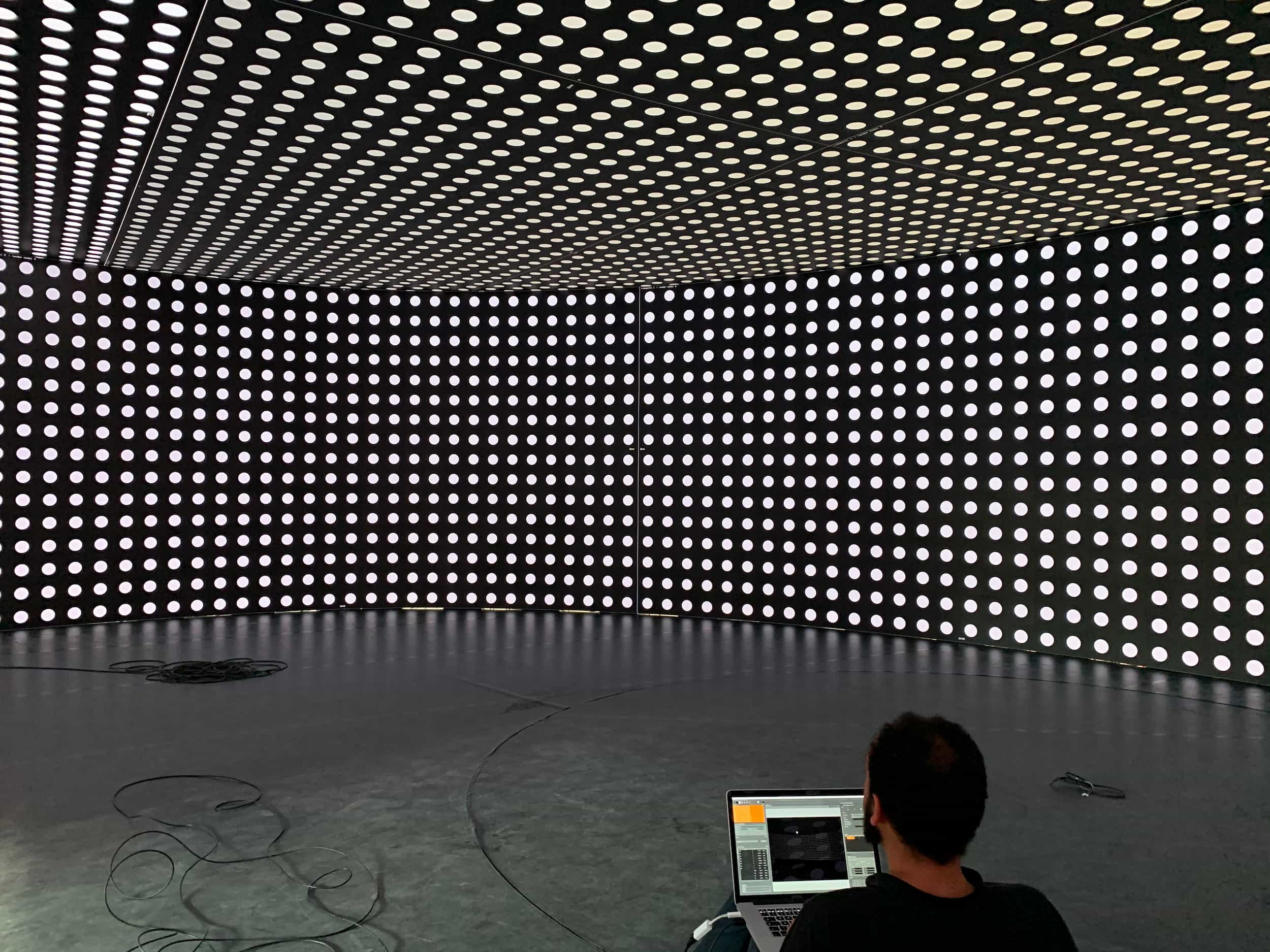 We are pleased that the cooperation with Studio L.O.U.P. at LEDcave Mannheim has been successful and that our ProjectionTools with the newly developed UnrealPlugin have been able to facilitate and accelerate realistic projections in the LEDcave. We scanned the architecture of the cave using our ProjectionTools and created a virtual representation of the physical room. In addition, we calculated a correct shading, blending and color correction of the panels.