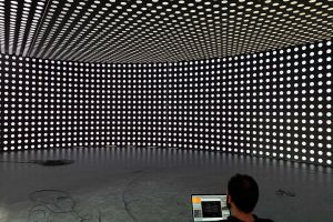 However, these color differences depend on the viewing angle and therefore have to be corrected depending on the current viewer position. In order to determine the necessary color correction for each panel for any given viewer position, a camera-based analysis tool measures the radiation behavior of the panels.