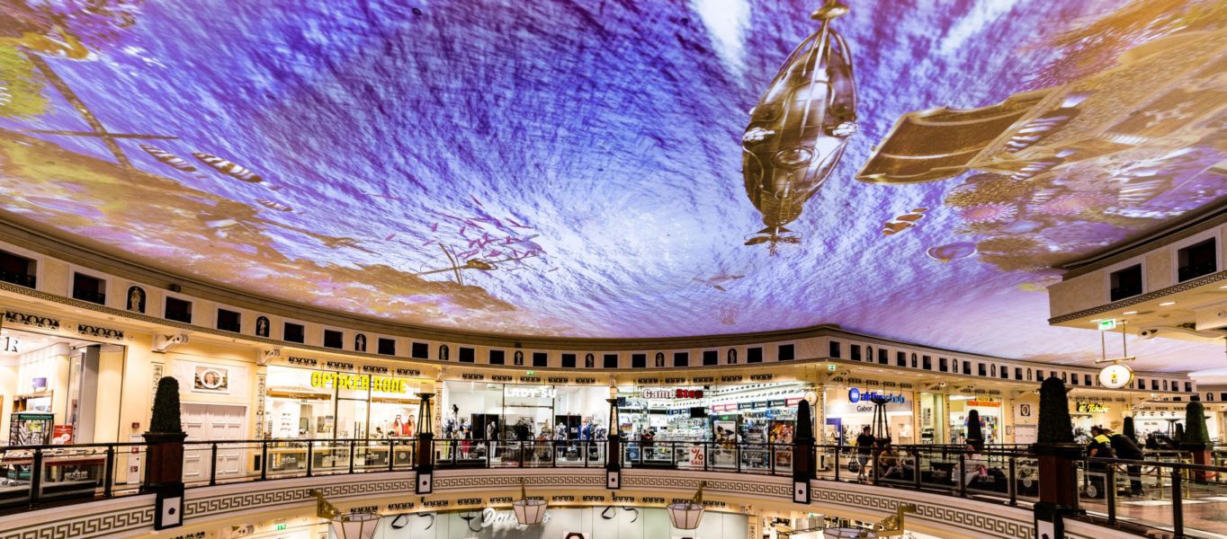 One of the largest projections in Europe realized by agency F1 GmbH for the shopping mall „Das Schloss“.