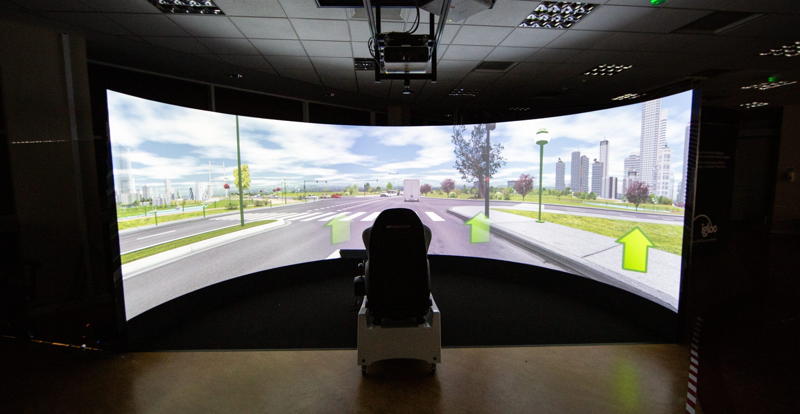 We are very glad to support ST Engineering Antycip providing a simulator for Cardiff University, which is used for research purposes in the field of human interactions with autonomous vehicles. The setup consisting of 3 Canon projectors was calibrated with VIOSO Anyblend VR&SIM to achieve a seamless immersive display for the research environment.