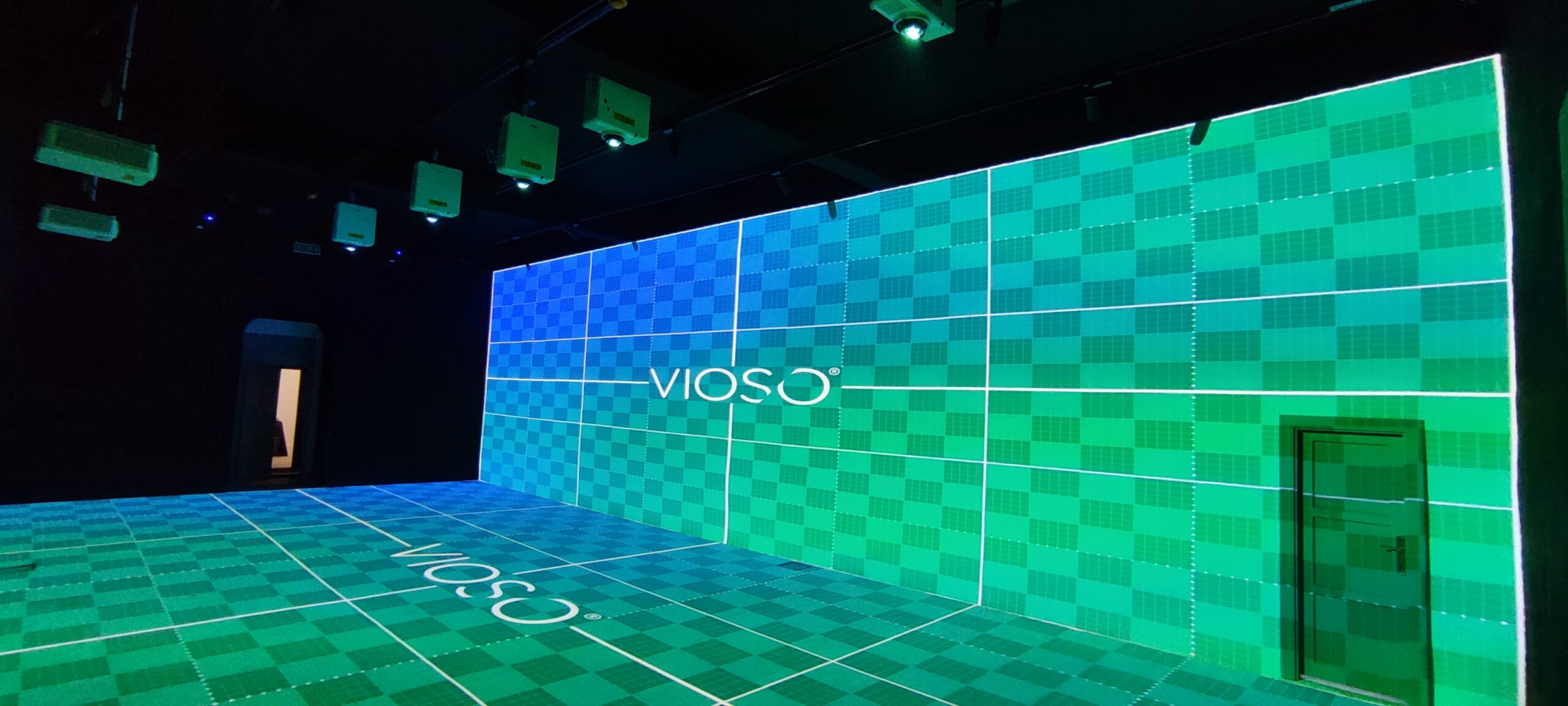 In total, Skyluft installed 9 Christie DWU630-GS projectors with 0.36 UST lenses, all of which were warped and blended using VIOSO6 calibration software. To enable camera-based calibration, they deployed three cameras across the 27 m² expanse, including one 185° fisheye calibration kit and two 89° wide-angle cameras, which provided complete coverage.