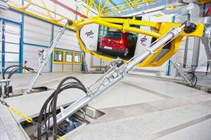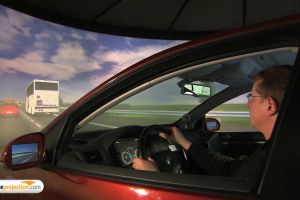 The DLR Institute of Transportation Systems (German Aerospace Center, Braunschweig/GERMANY) operates a dynamic driving simulator for the validation of assistance functions that are already in an advanced state of development. The driving simulator is equipped with a novel hexapod system with the cabin hanging in below the upper joints, which allows enormous linear movements and integration of a complete vehicle.