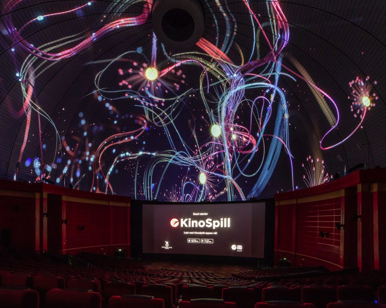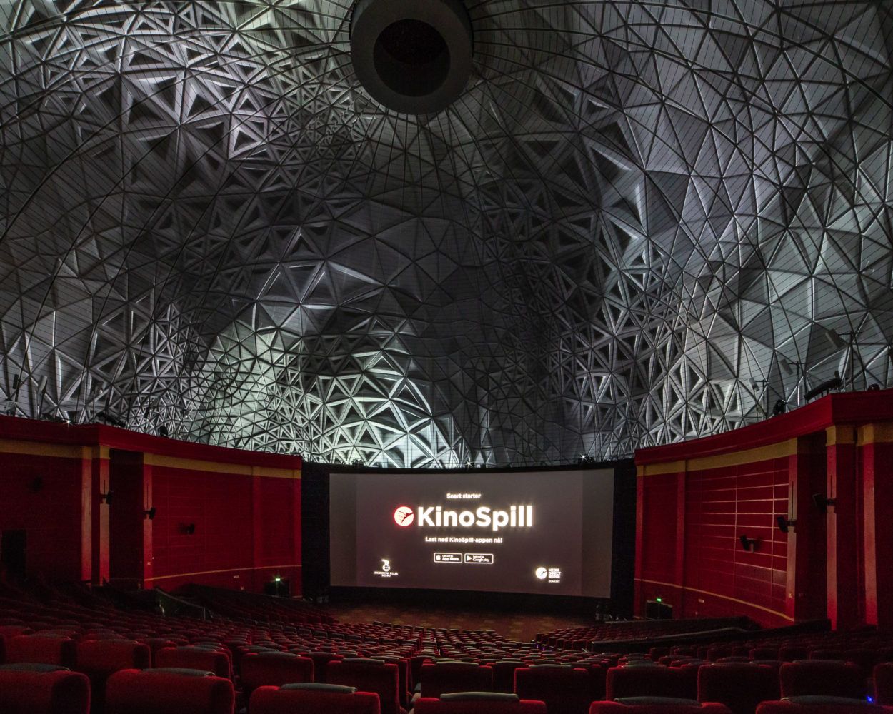 As part of a major overhaul of the main theatre, including a new 22m RealD cinema screen and an Auromax sound system featuring 50 new speakers, the impressive historical dome-shaped ceiling with a diameter of 45 meters now serves as immersive screen for trailers, screening openings, or athmospheric projections for special events.