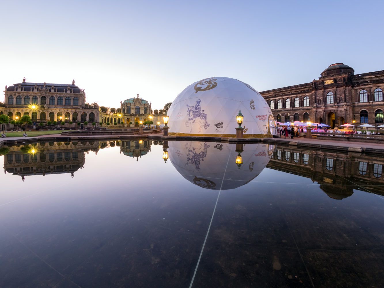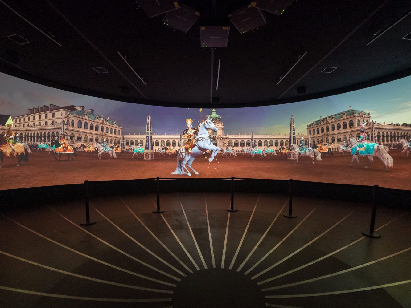 A dome without a dome projection? Why not! At Dresdner Zwinger you can now visit a dome tent with an immersive 270° cylindrical panorama projection inside. In celebration of the “wedding of the century” that took place in the Zwinger 300 years ago in 1719, the content creators of M Box Berlin designed a colorful animated sequence played back with vvvv that puts visitors right in the center of this magnificent spectacle.