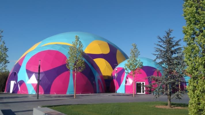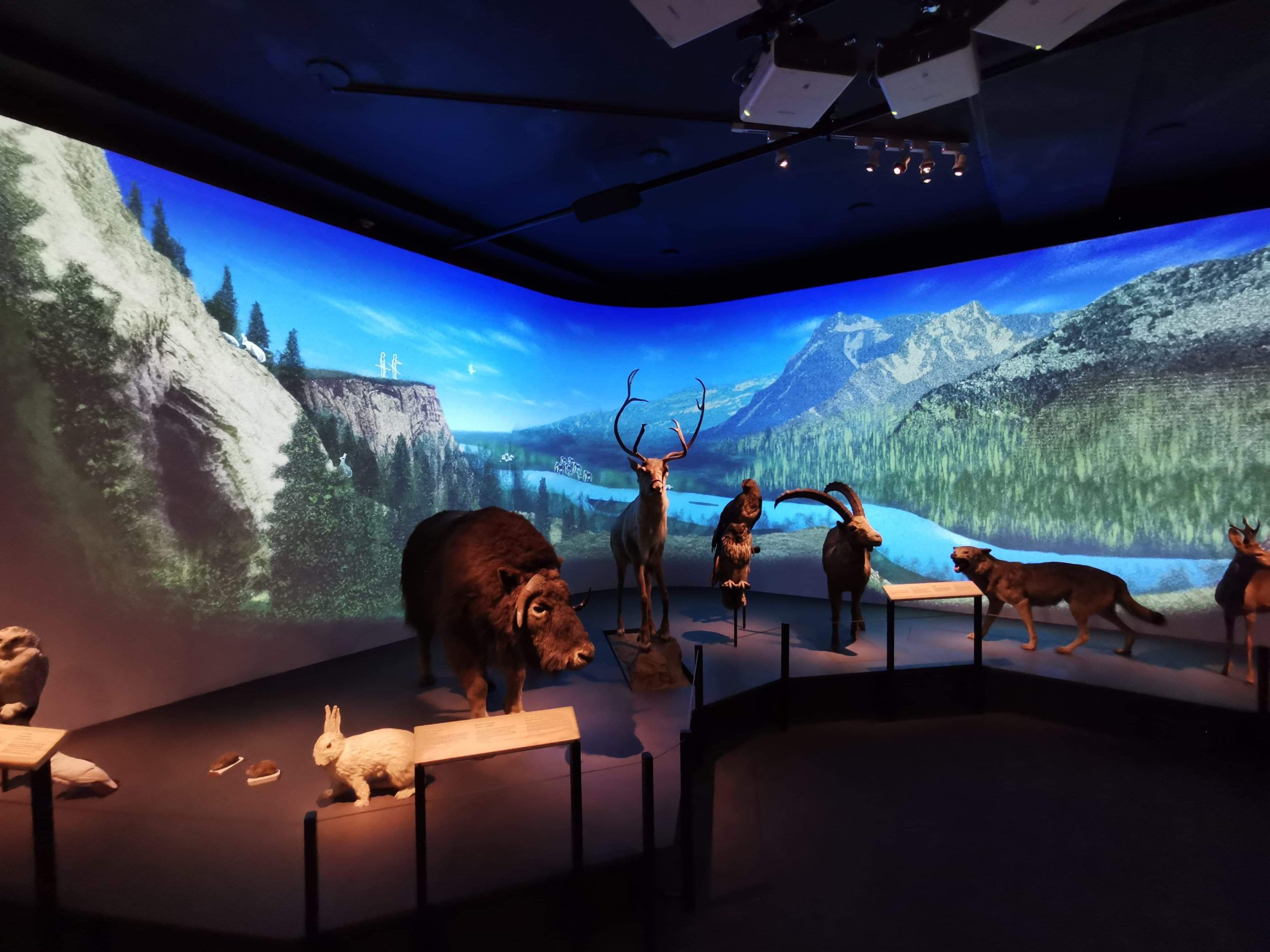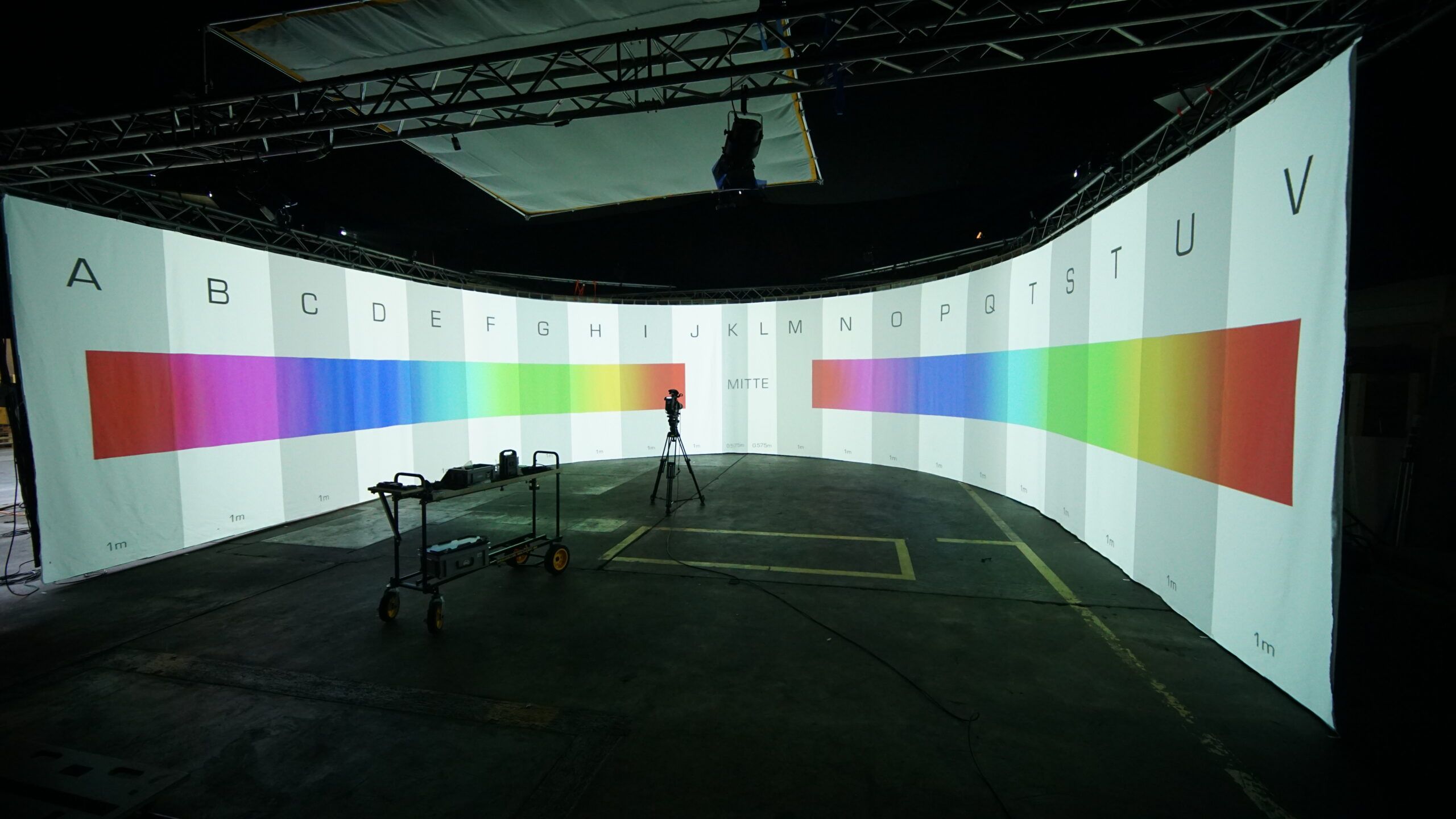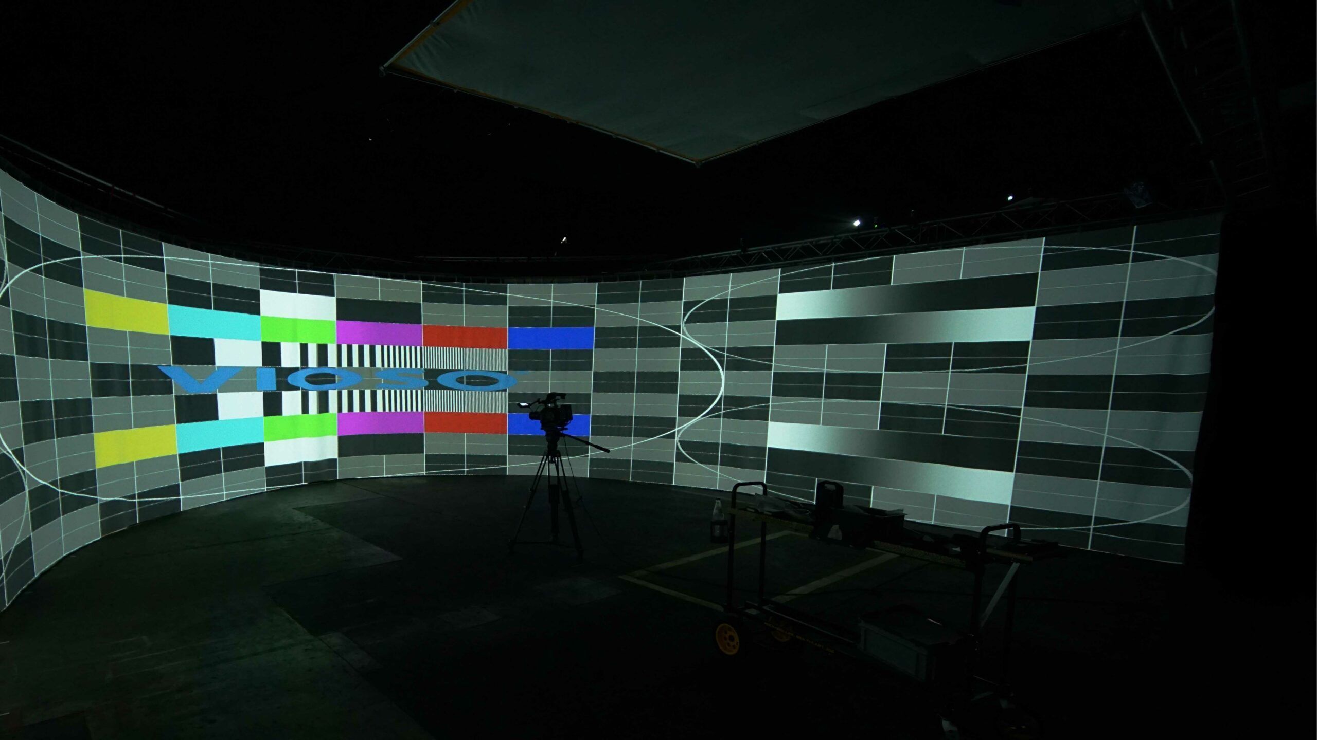 The installation at Hyper Space Studio consists of a 270° cylindrical screen covered by 4x projectors displaying real-time rendered content from Unreal Engine (nDisplay).