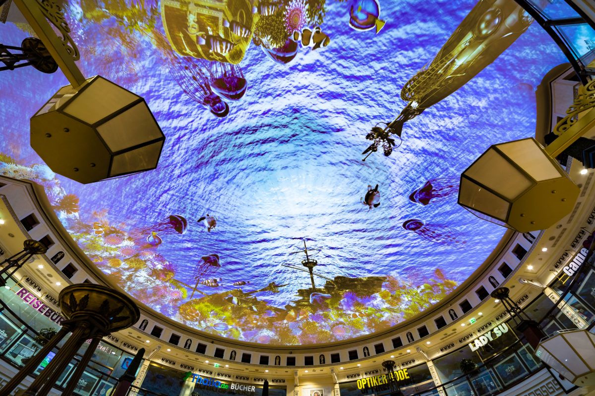 One of the largest projections in Europe realized by agency F1 GmbH for the shopping mall „Das Schloss“.