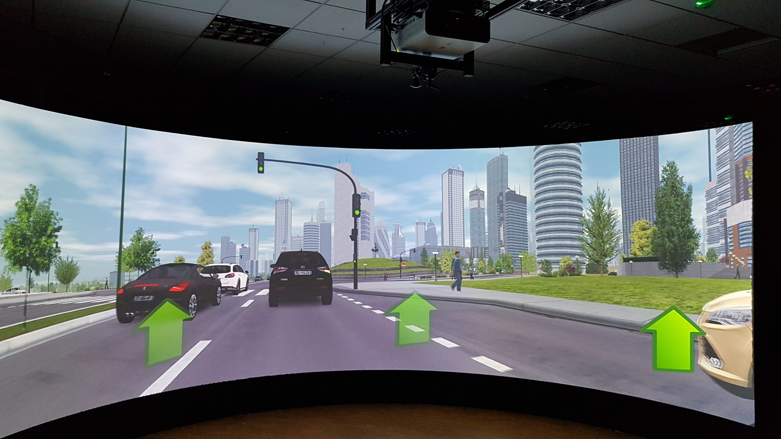 We are very glad to support ST Engineering Antycip providing a simulator for Cardiff University, which is used for research purposes in the field of human interactions with autonomous vehicles. The setup consisting of 3 Canon projectors was calibrated with VIOSO Anyblend VR&SIM to achieve a seamless immersive display for the research environment.